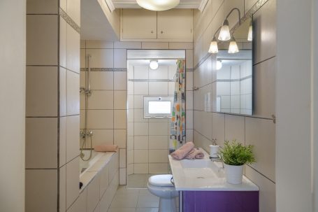 Ein modernes Badezimmer mit großzügiger Dusche und Badewanne