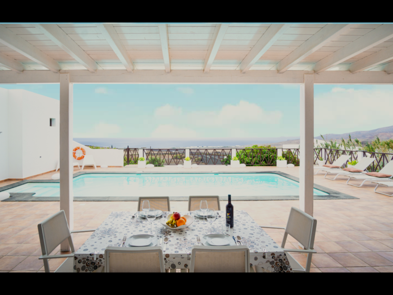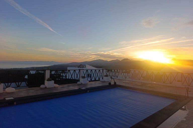 Genießen Sie den spektakulären Panoramablick über den Atlantik bis nach Fuerteventura - ob beim Frühstück auf der Terrasse, einem Bad im Pool oder einem gemütlichen Abend im Freien.